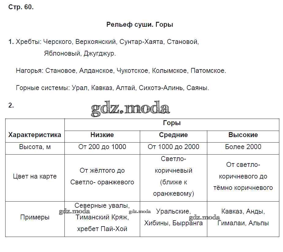 ГДЗ решение к заданию № 60 География 6 класс рабочая тетрадь Карташева Т.А. (к уч. Герасимовой) Дрофа 2020 ФГОС бесплатно на гдз.мода!