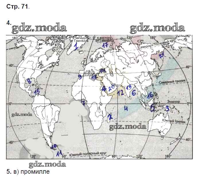 ГДЗ решение к заданию № 71 География 6 класс рабочая тетрадь Карташева Т.А. (к уч. Герасимовой) Дрофа 2020 ФГОС бесплатно на гдз.мода!