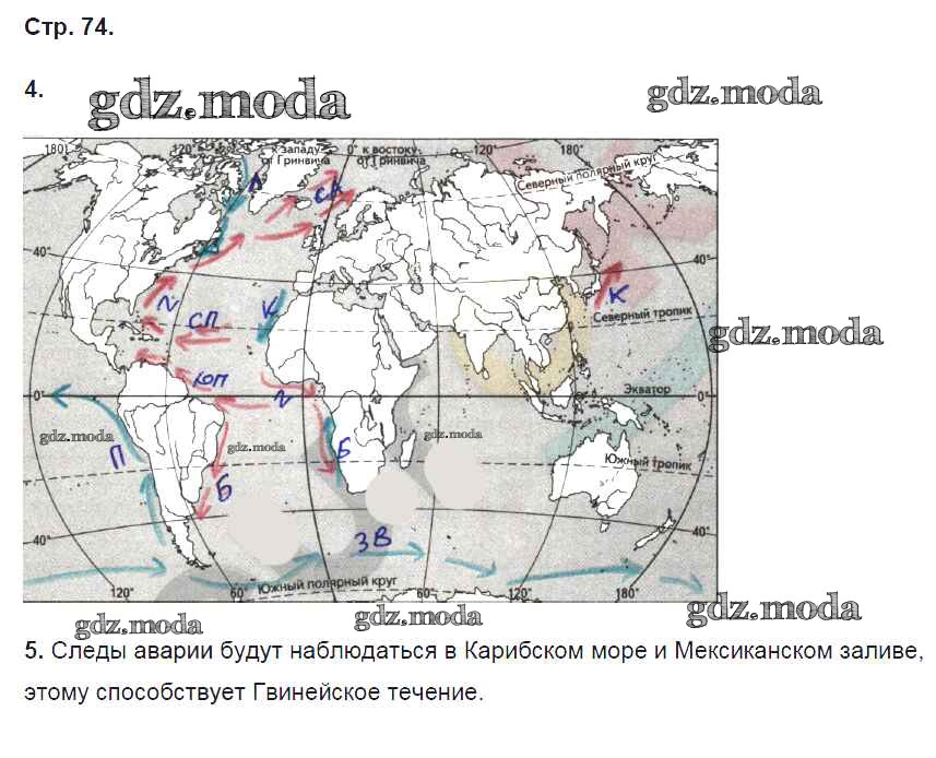 ГДЗ решение к заданию № 74 География 6 класс рабочая тетрадь Карташева Т.А. (к уч. Герасимовой) Дрофа 2020 ФГОС бесплатно на гдз.мода!