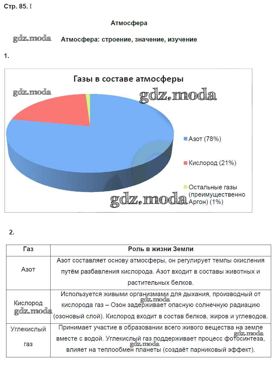 ГДЗ решение к заданию № 85 География 6 класс рабочая тетрадь Карташева Т.А. (к уч. Герасимовой) Дрофа 2020 ФГОС бесплатно на гдз.мода!