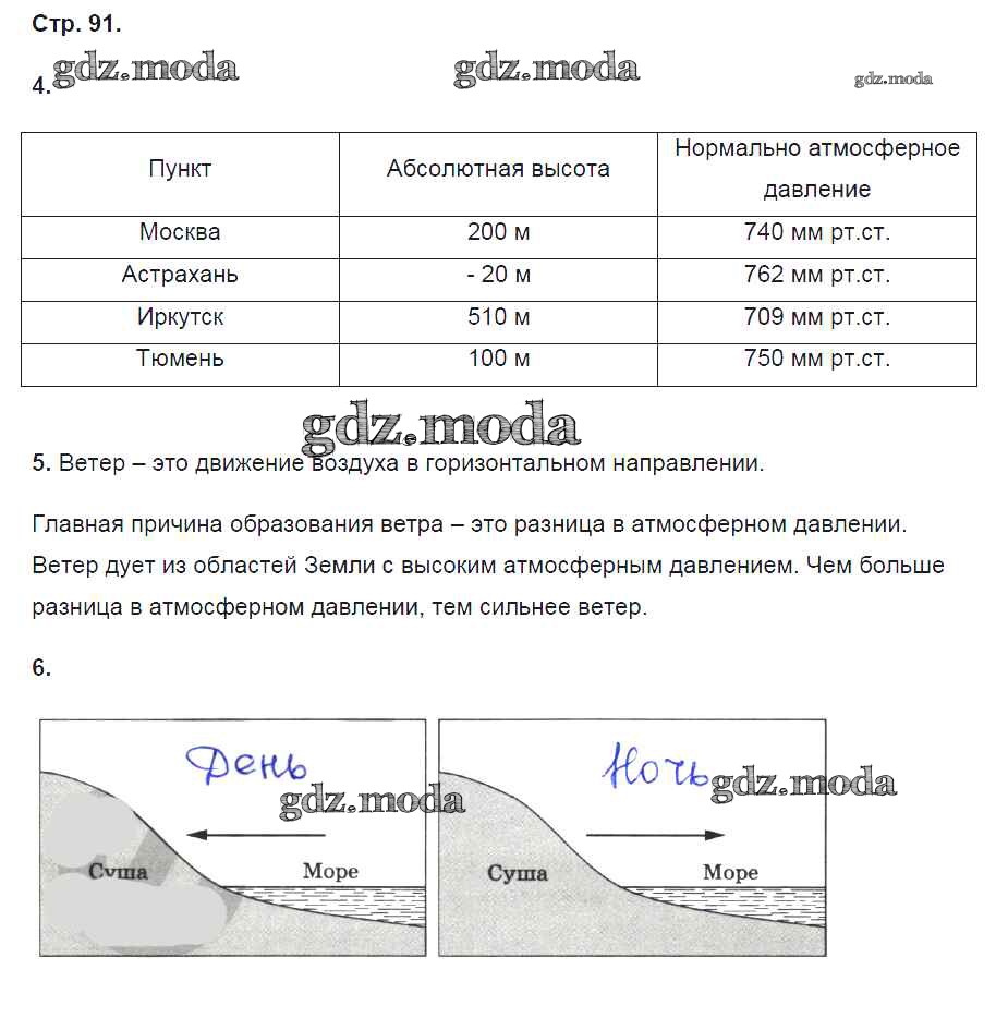 ГДЗ решение к заданию № 91 География 6 класс рабочая тетрадь Карташева Т.А. (к уч. Герасимовой) Дрофа 2020 ФГОС бесплатно на гдз.мода!