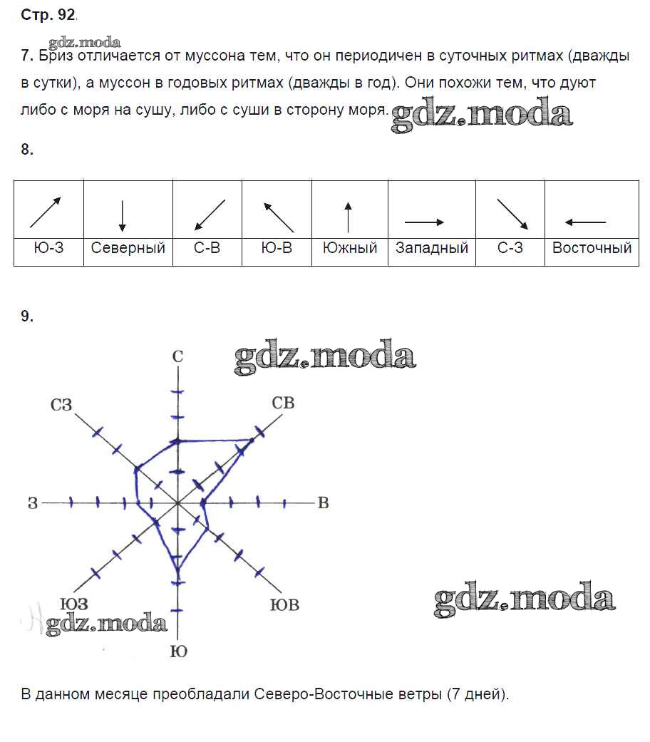 ГДЗ решение к заданию № 92 География 6 класс рабочая тетрадь Карташева Т.А. (к уч. Герасимовой) Дрофа 2020 ФГОС бесплатно на гдз.мода!
