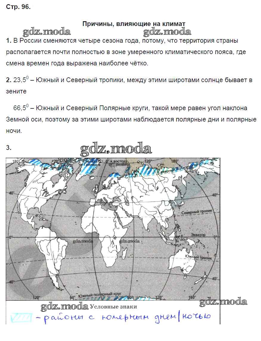 ГДЗ решение к заданию № 96 География 6 класс рабочая тетрадь Карташева Т.А. (к уч. Герасимовой) Дрофа 2020 ФГОС бесплатно на гдз.мода!