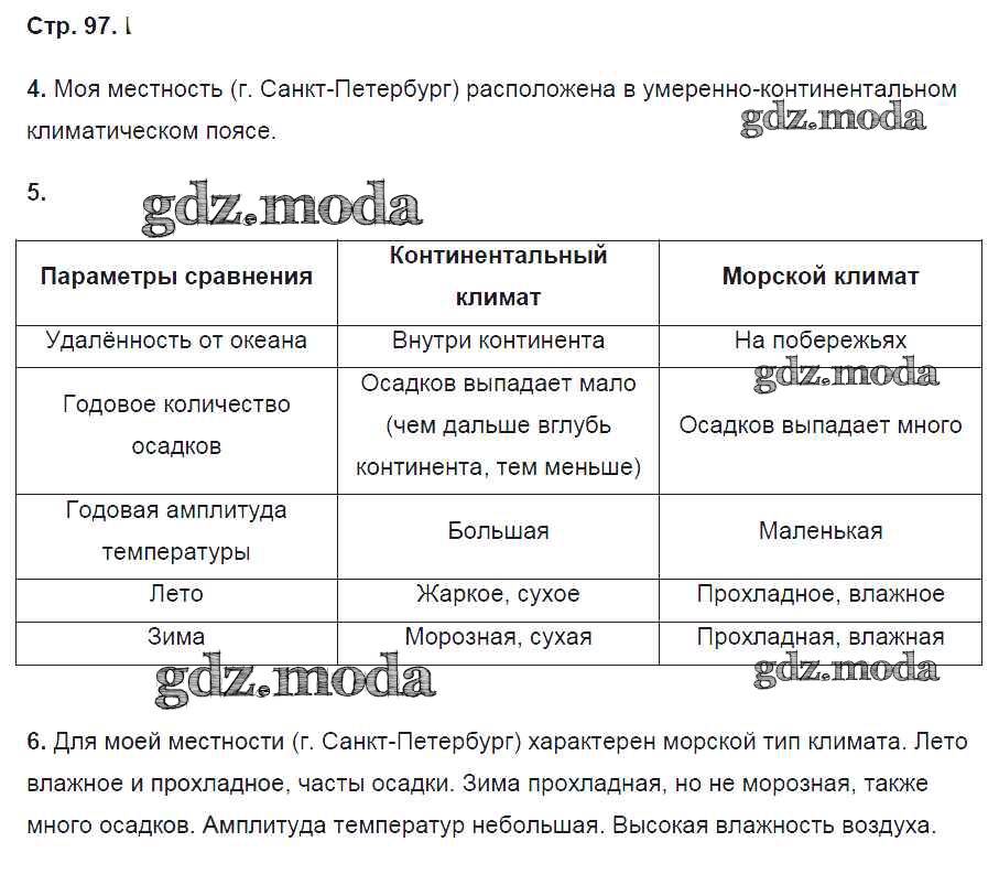 ГДЗ решение к заданию № 97 География 6 класс рабочая тетрадь Карташева Т.А. (к уч. Герасимовой) Дрофа 2020 ФГОС бесплатно на гдз.мода!