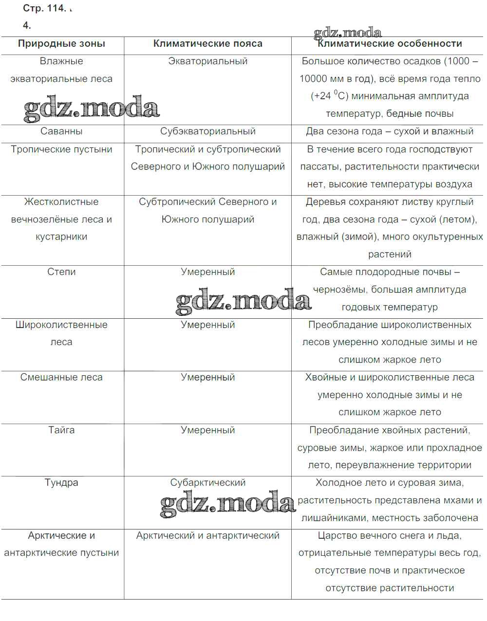 ГДЗ решение к заданию № 114 География 6 класс рабочая тетрадь Румянцев А.В. (к уч. Климановой) Дрофа 2015 ФГОС бесплатно на гдз.мода!