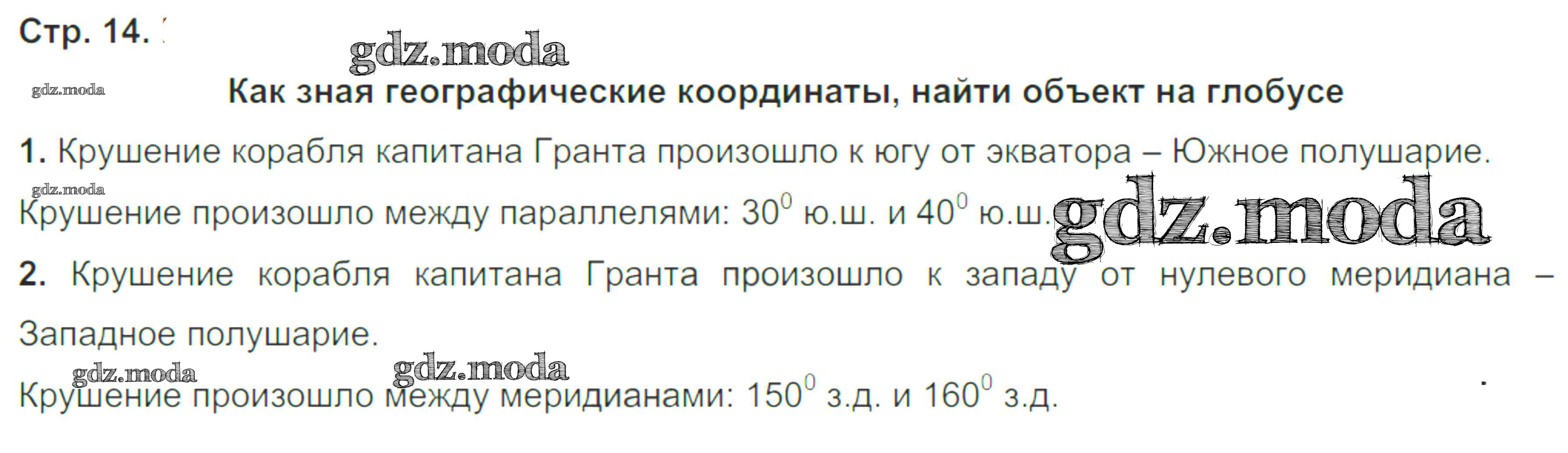 ГДЗ решение к заданию № 14 География 6 класс рабочая тетрадь Румянцев А.В. (к уч. Климановой) Дрофа 2015 ФГОС бесплатно на гдз.мода!
