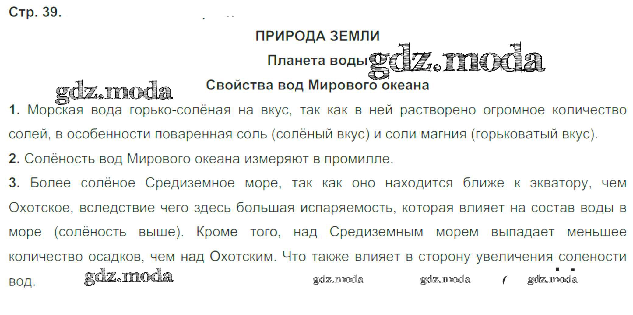 ГДЗ решение к заданию № 39 География 6 класс рабочая тетрадь Румянцев А.В. (к уч. Климановой) Дрофа 2015 ФГОС бесплатно на гдз.мода!