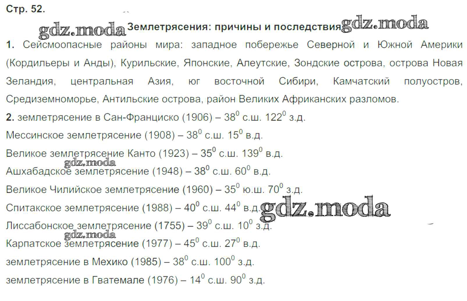 ГДЗ решение к заданию № 52 География 6 класс рабочая тетрадь Румянцев А.В. (к уч. Климановой) Дрофа 2015 ФГОС бесплатно на гдз.мода!