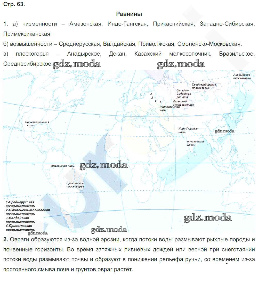 ГДЗ решение к заданию № 63 География 6 класс рабочая тетрадь Румянцев А.В. (к уч. Климановой) Дрофа 2015 ФГОС бесплатно на гдз.мода!