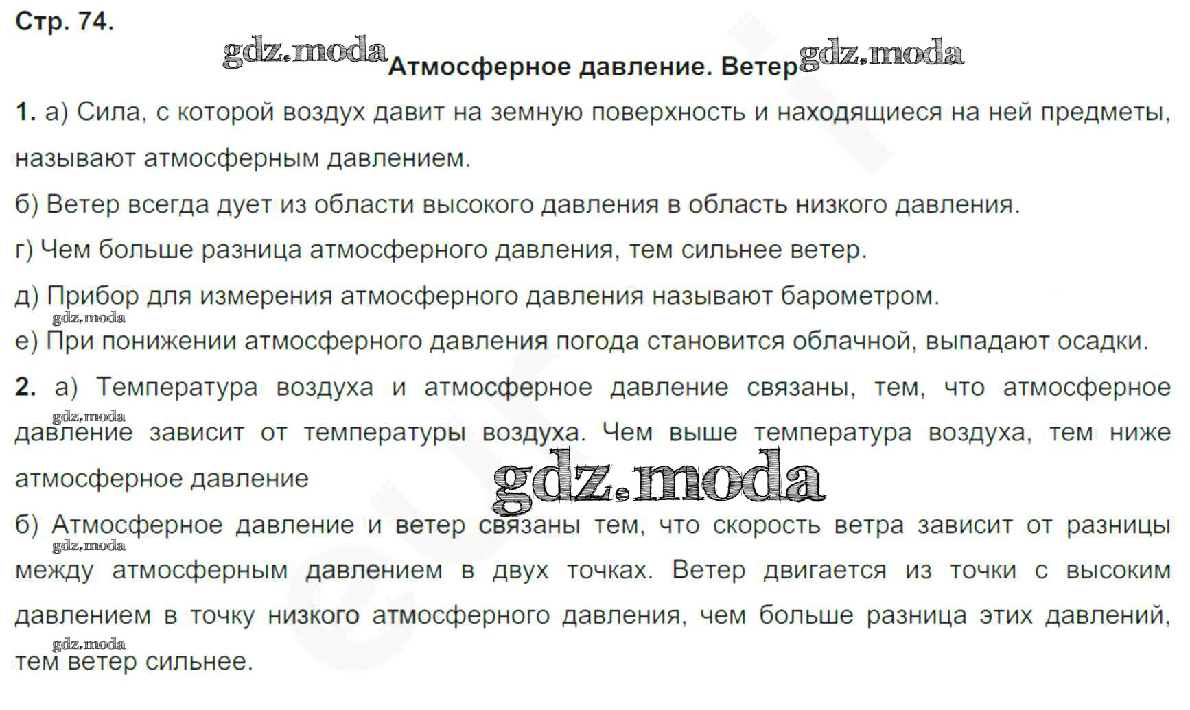 ГДЗ решение к заданию № 74 География 6 класс рабочая тетрадь Румянцев А.В. (к уч. Климановой) Дрофа 2015 ФГОС бесплатно на гдз.мода!