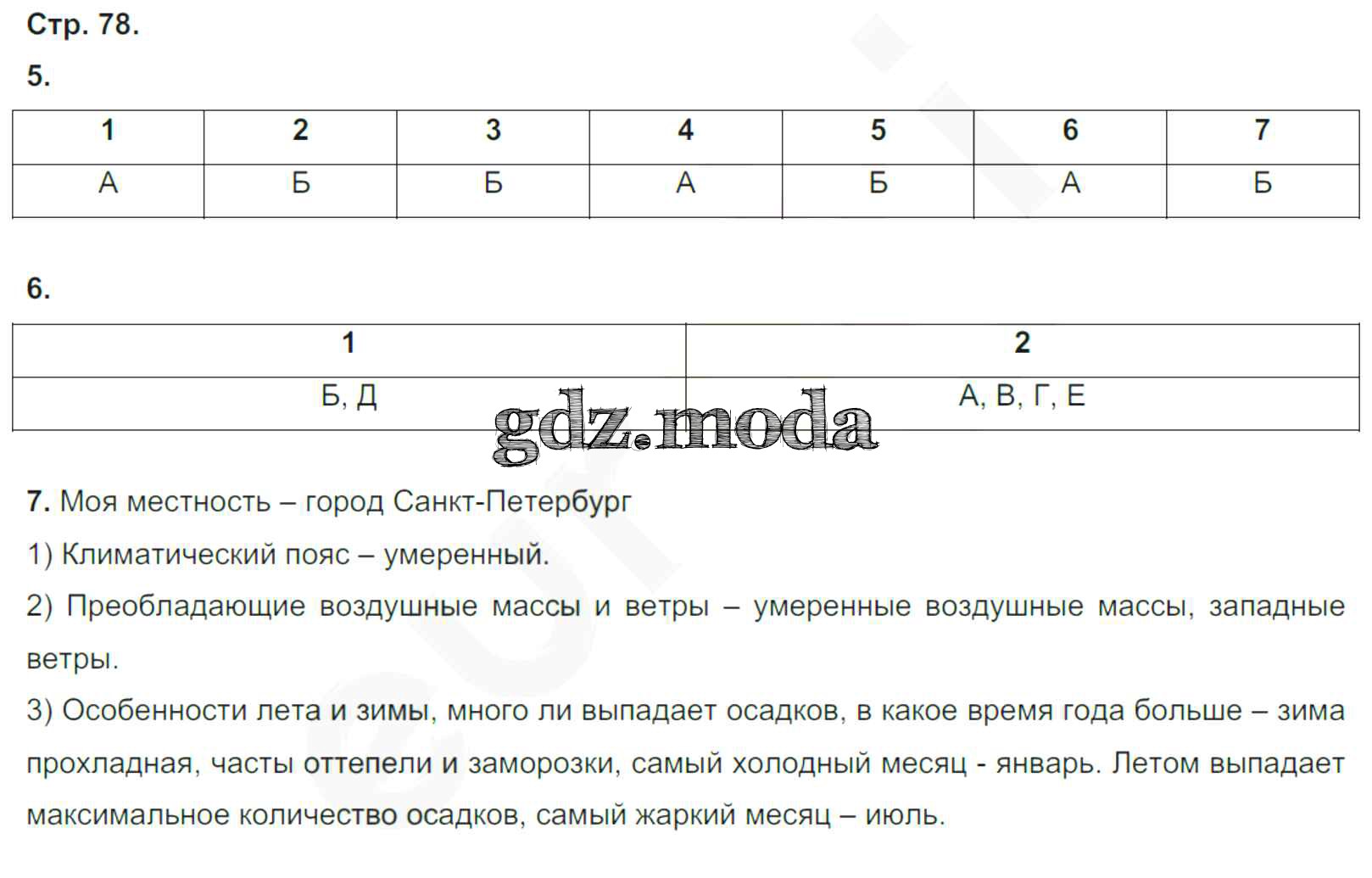 ГДЗ решение к заданию № 78 География 6 класс рабочая тетрадь Румянцев А.В. (к уч. Климановой) Дрофа 2015 ФГОС бесплатно на гдз.мода!