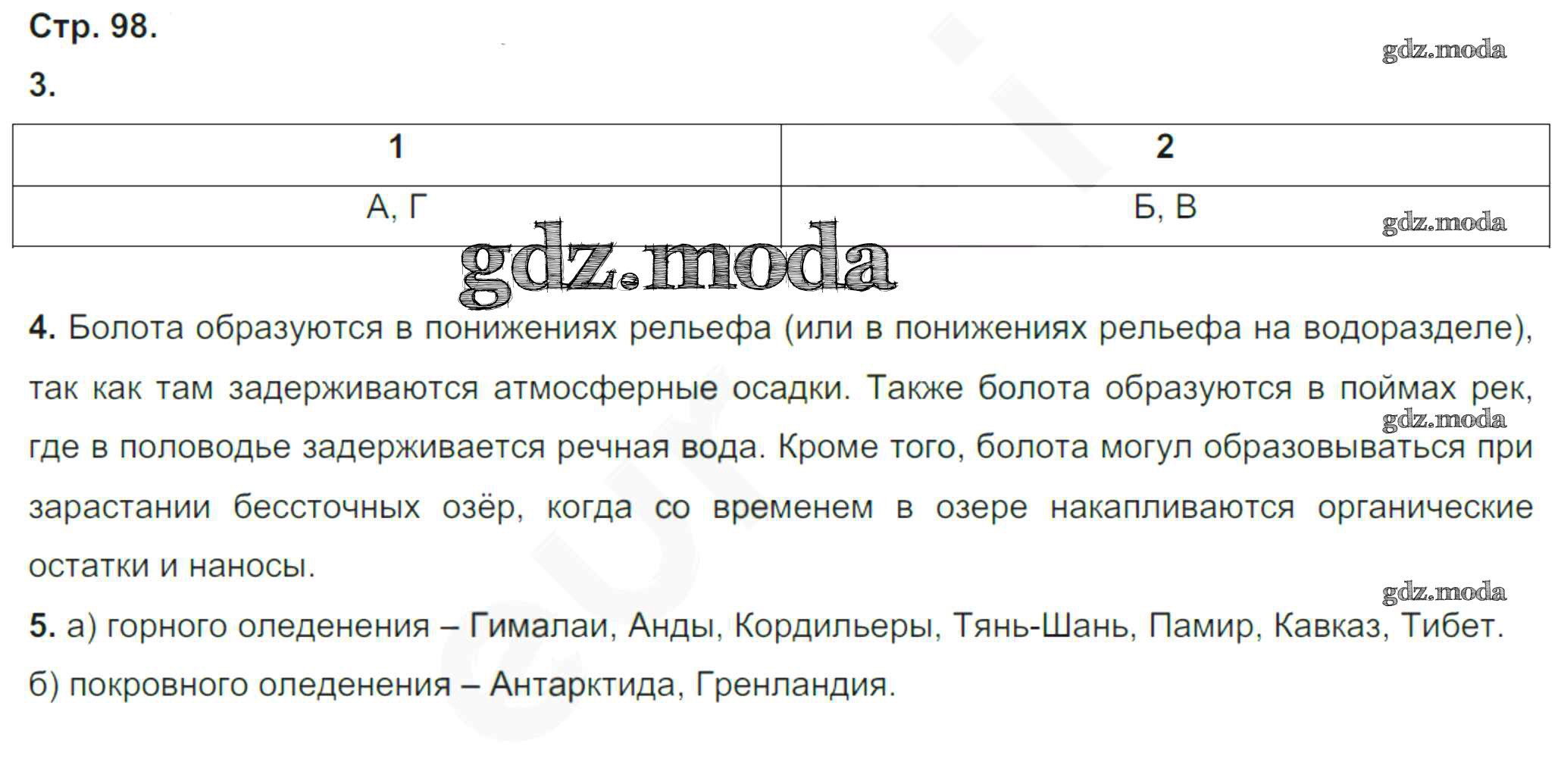 ГДЗ решение к заданию № 98 География 6 класс рабочая тетрадь Румянцев А.В. (к уч. Климановой) Дрофа 2015 ФГОС бесплатно на гдз.мода!