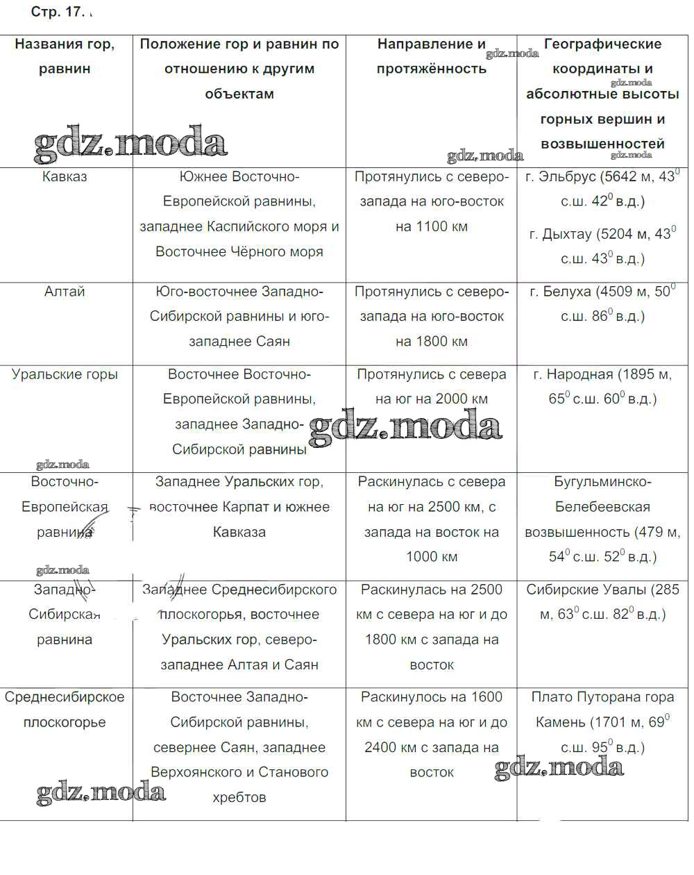 ГДЗ решение к заданию № 17 География 5-6 классы рабочая тетрадь Сиротин В.И. Дрофа 2019 ФГОС бесплатно на гдз.мода!