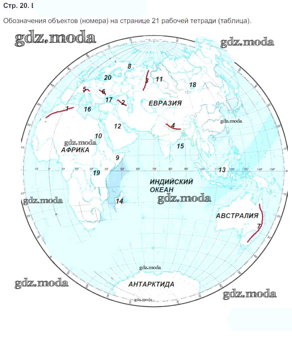 ГДЗ решение к заданию № 20 География 5-6 классы рабочая тетрадь Сиротин В.И. Дрофа 2019 ФГОС бесплатно на гдз.мода!