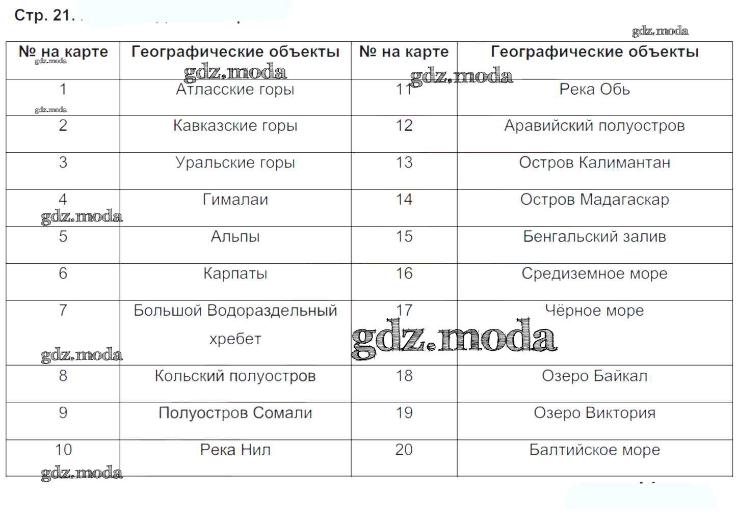 ГДЗ решение к заданию № 21 География 5-6 классы рабочая тетрадь Сиротин В.И. Дрофа 2019 ФГОС бесплатно на гдз.мода!