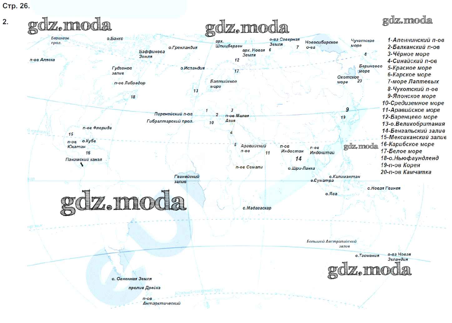 ГДЗ решение к заданию № 26 География 5-6 классы рабочая тетрадь Сиротин В.И. Дрофа 2019 ФГОС бесплатно на гдз.мода!