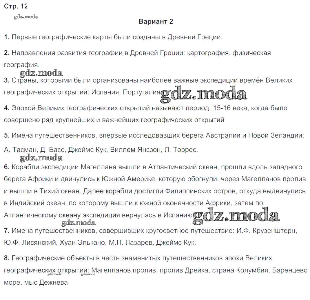 ГДЗ решение к заданию № 12 География 5-6 классы тетрадь-экзаменатор Барабанов В.В. Просвещение 2017 ФГОС бесплатно на гдз.мода!