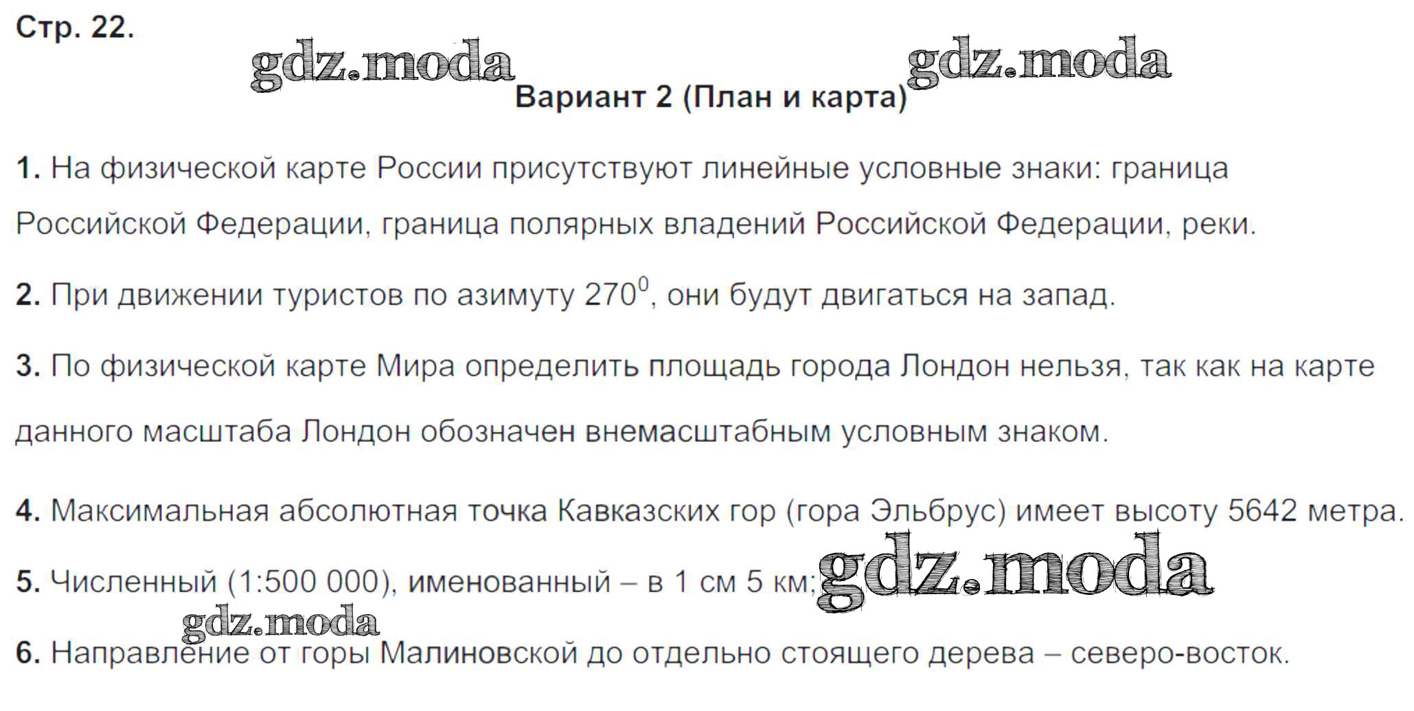 ГДЗ решение к заданию № 22 География 5-6 классы тетрадь-экзаменатор Барабанов В.В. Просвещение 2017 ФГОС бесплатно на гдз.мода!
