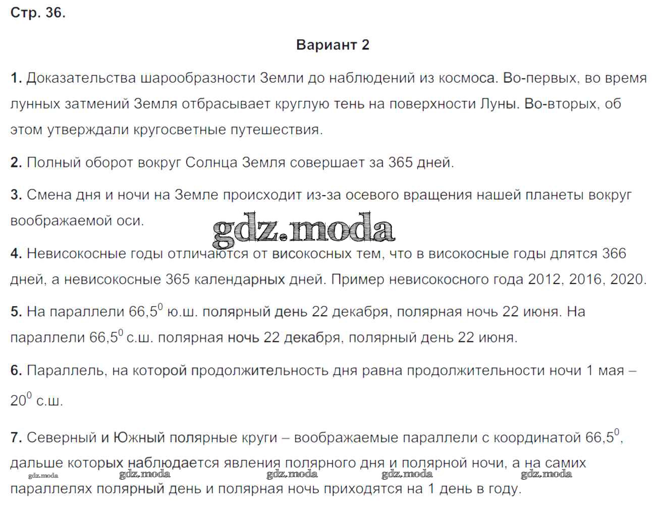 ГДЗ решение к заданию № 36 География 5-6 классы тетрадь-экзаменатор Барабанов В.В. Просвещение 2017 ФГОС бесплатно на гдз.мода!