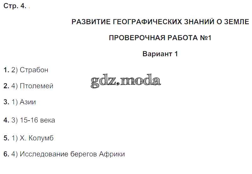ГДЗ решение к заданию № 4 География 5-6 классы тетрадь-экзаменатор Барабанов В.В. Просвещение 2017 ФГОС бесплатно на гдз.мода!
