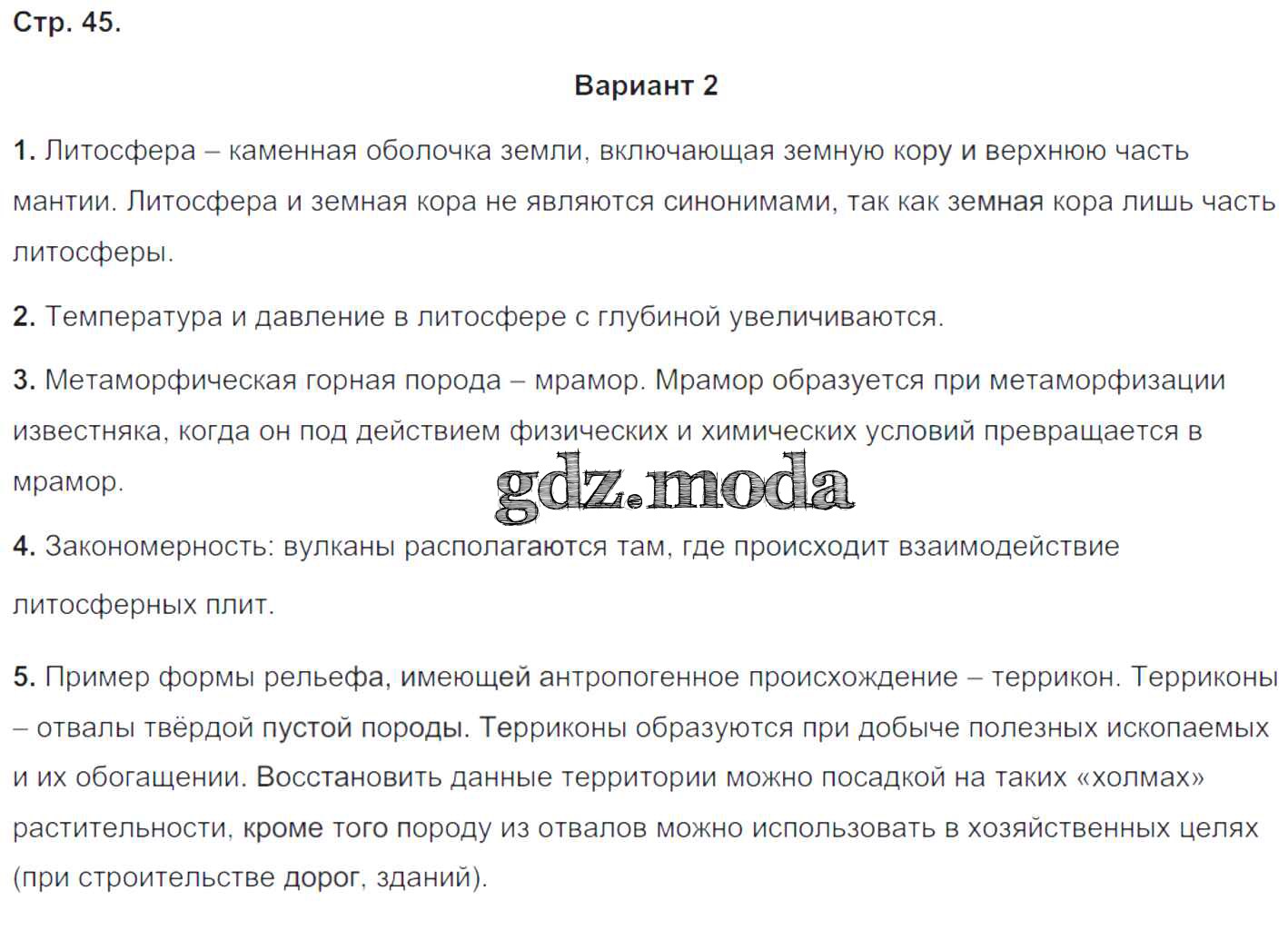 ГДЗ решение к заданию № 45 География 5-6 классы тетрадь-экзаменатор Барабанов В.В. Просвещение 2017 ФГОС бесплатно на гдз.мода!