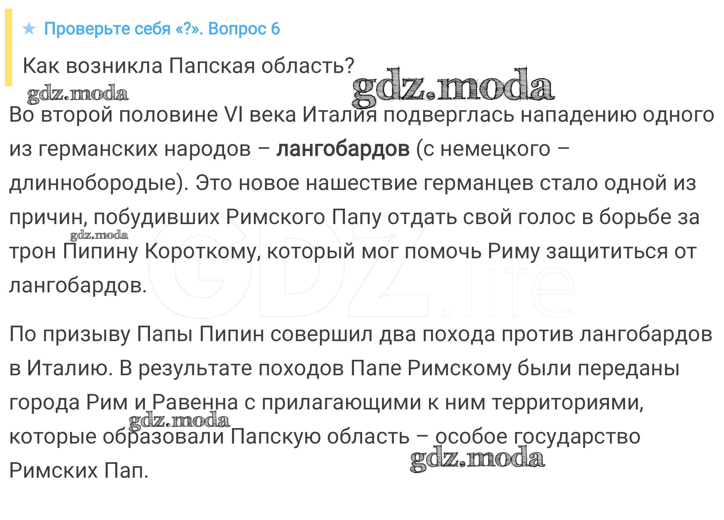 ГДЗ решение к заданию № 6 Всеобщая история. История средних веков 6 класс Агибалова Е.В. Просвещение 2014 ФГОС бесплатно на гдз.мода!