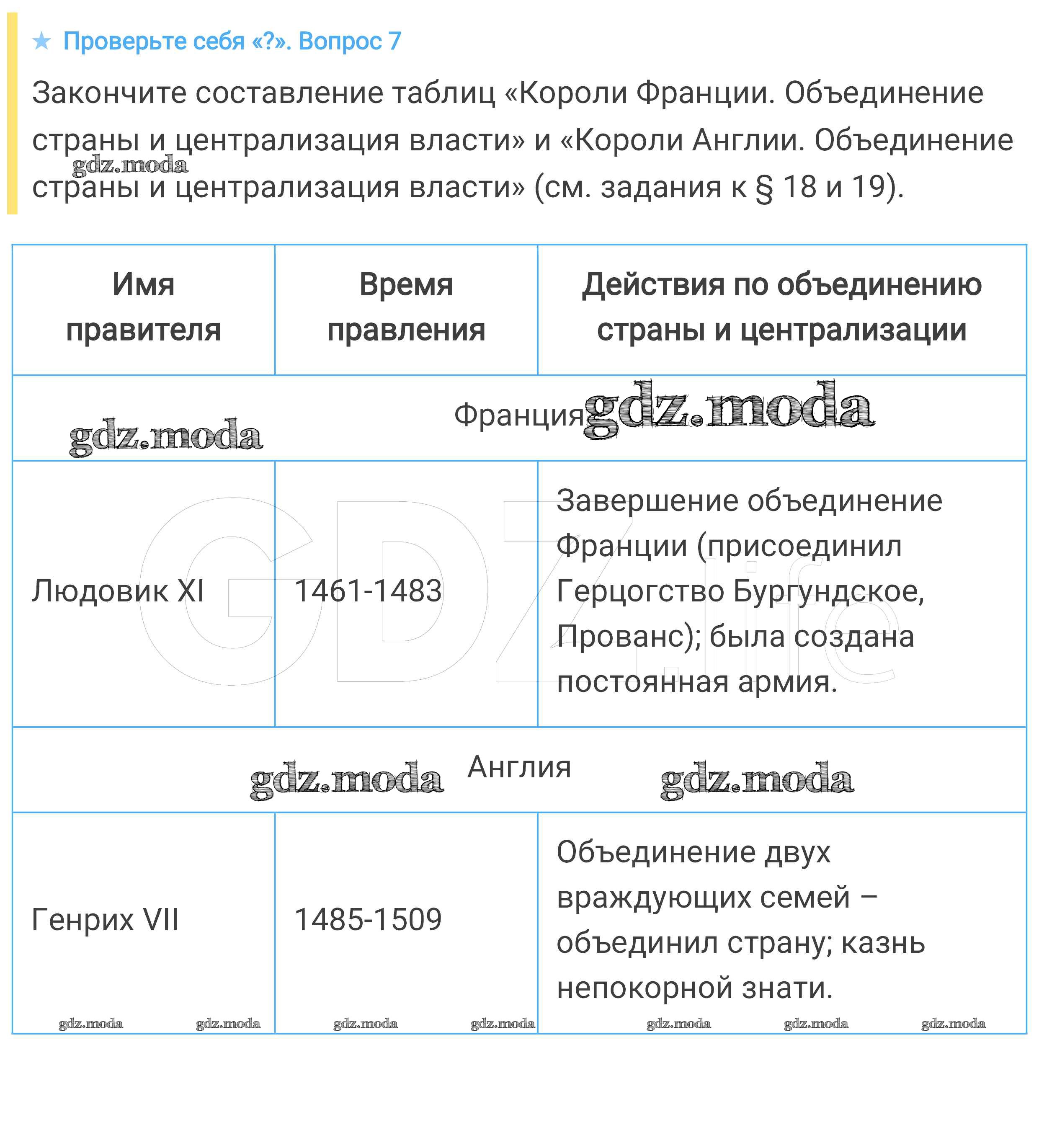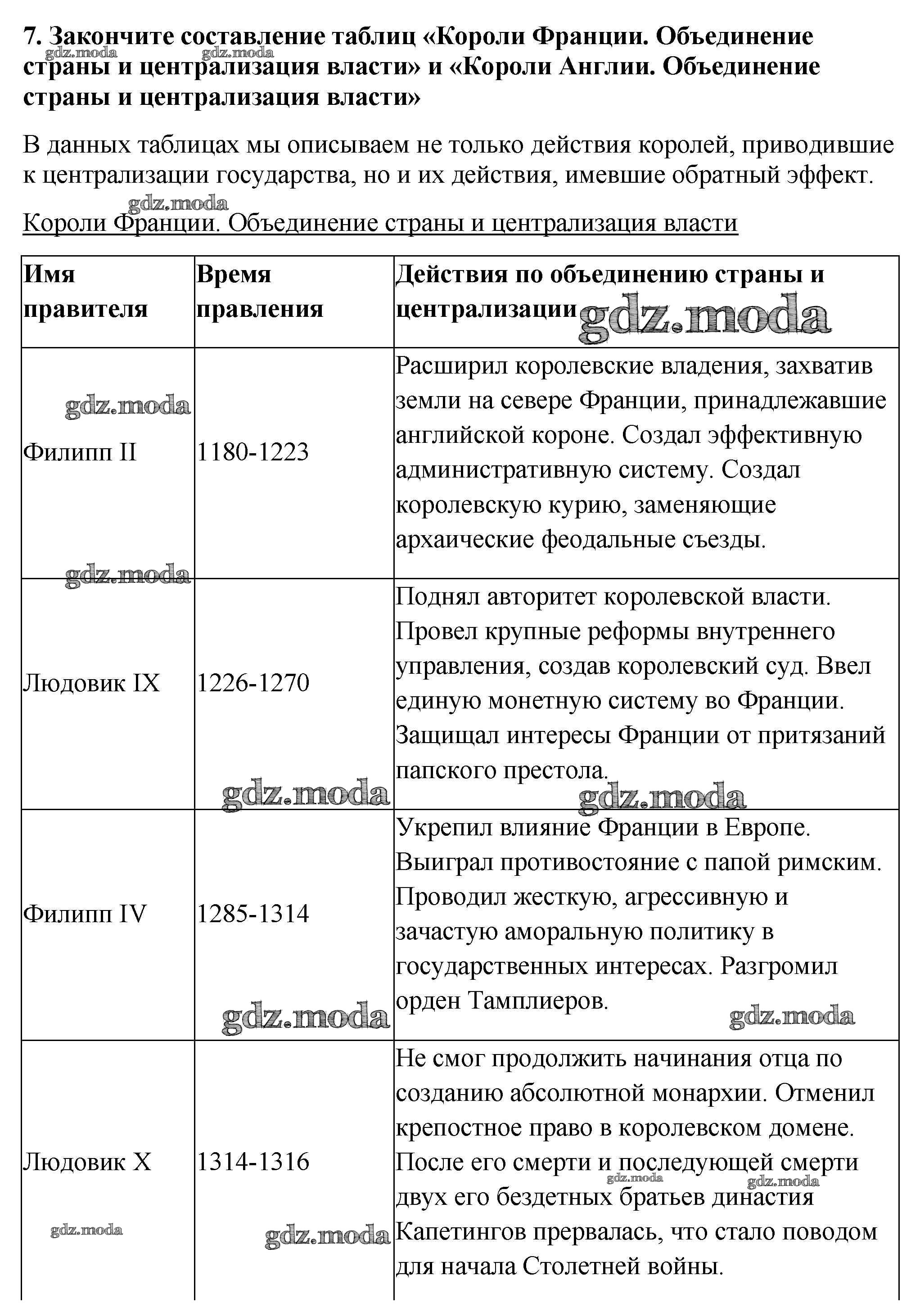 ГДЗ решение к заданию № 7 Всеобщая история. История средних веков 6 класс Агибалова Е.В. Просвещение 2014 ФГОС бесплатно на гдз.мода!