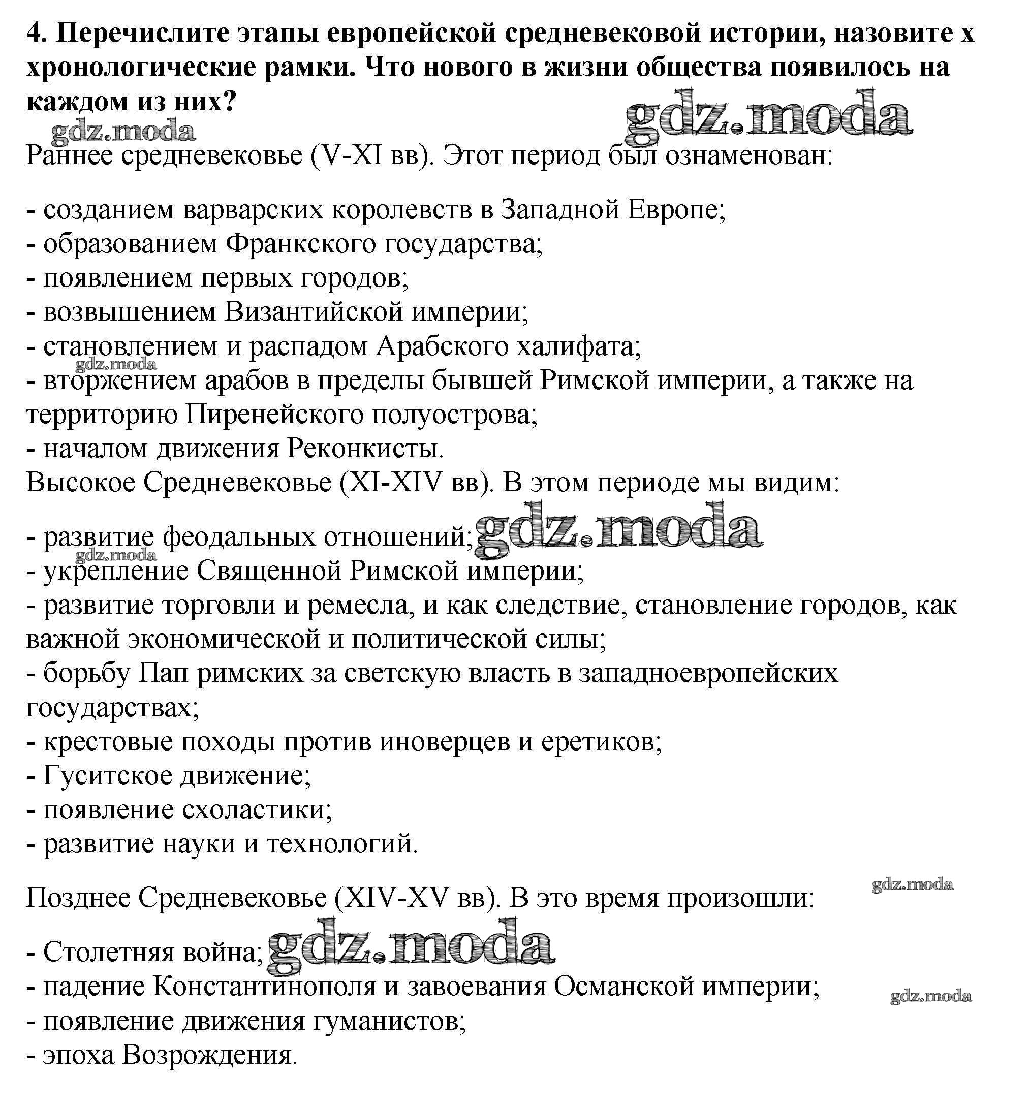 ГДЗ решение к заданию № 4 Всеобщая история. История средних веков 6 класс Агибалова Е.В. Просвещение 2014 ФГОС бесплатно на гдз.мода!