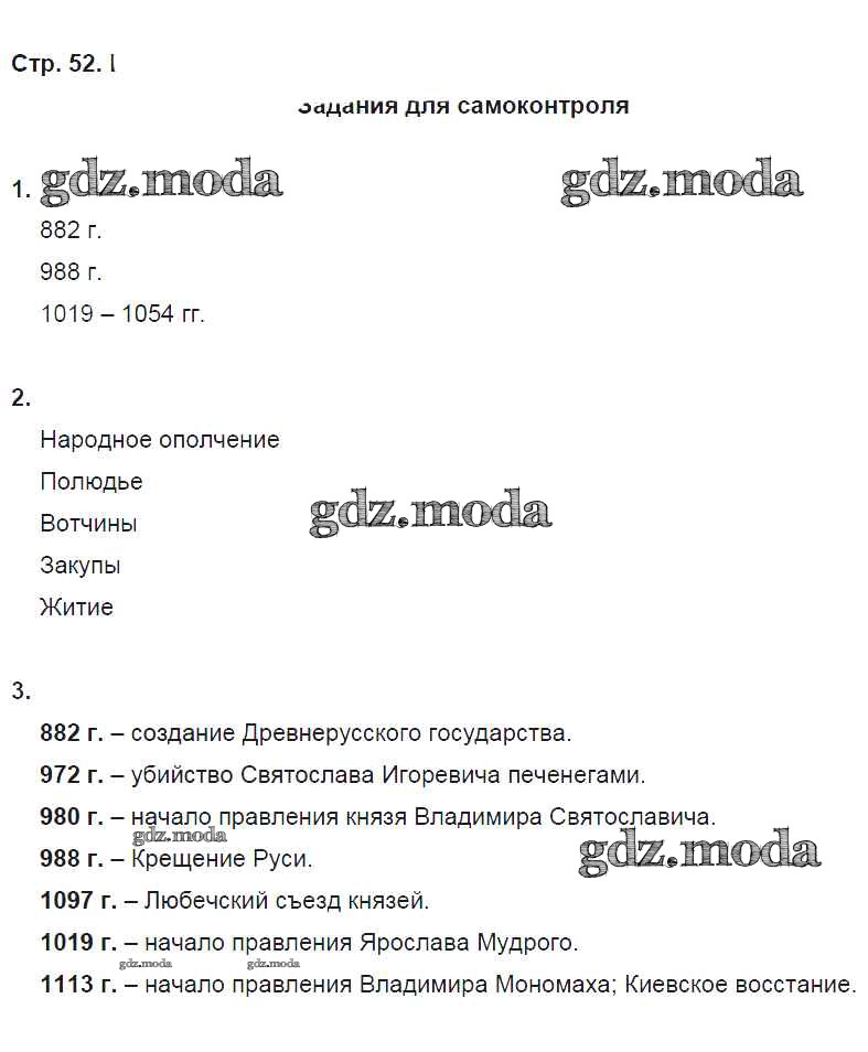 ГДЗ решение к заданию № стр. 52 История России 6 класс рабочая тетрадь Артасов И.А. Просвещение 2016 ФГОС бесплатно на гдз.мода!