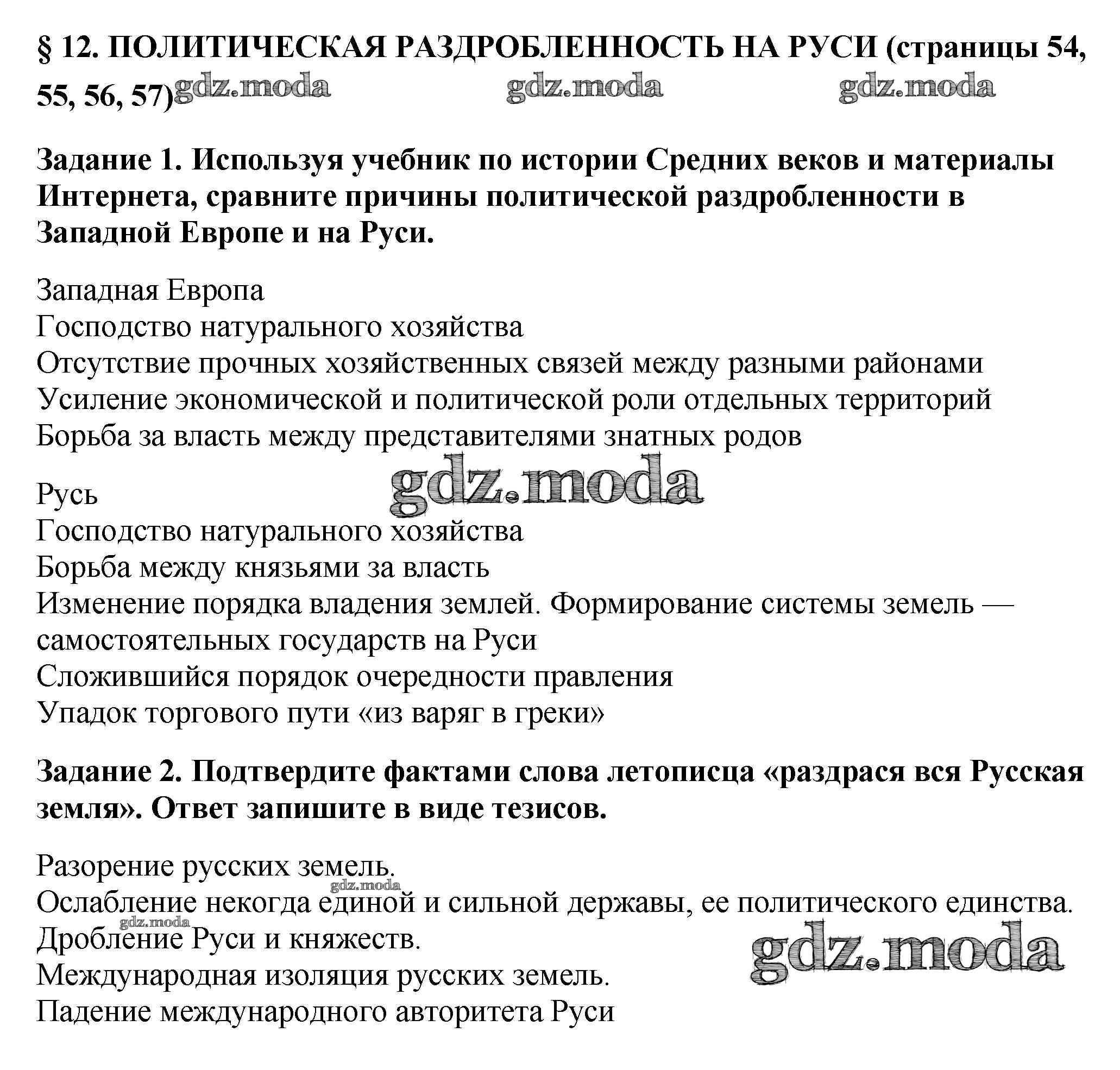 ОТВЕТ на задание № стр. 54 Рабочая тетрадь по Истории 6 класс Артасов