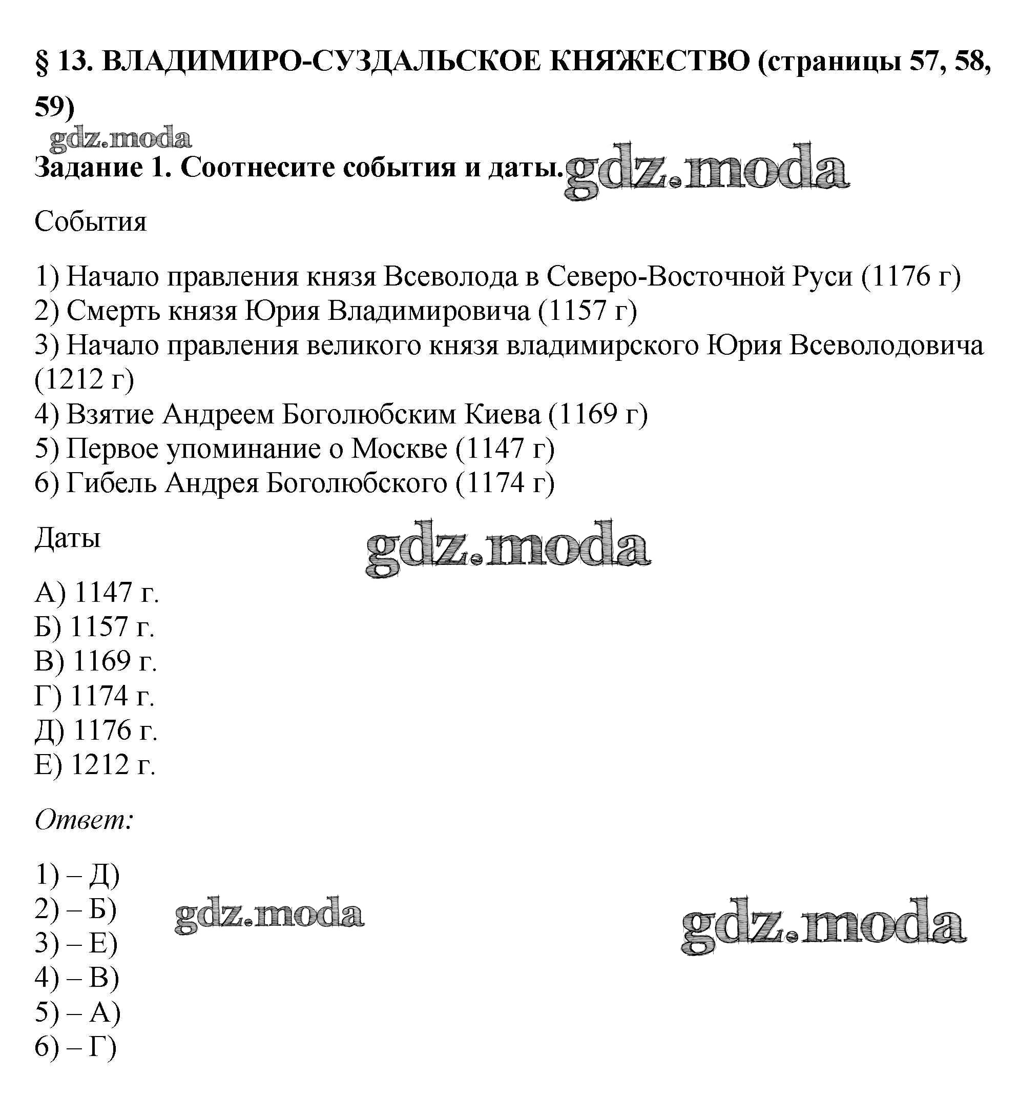 ГДЗ решение к заданию № стр. 57 История России 6 класс рабочая тетрадь Артасов И.А. Просвещение 2016 ФГОС бесплатно на гдз.мода!