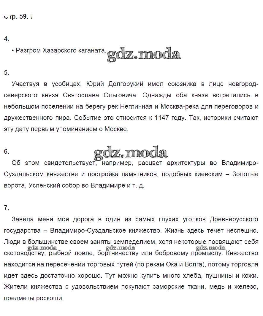 ГДЗ решение к заданию № стр. 59 История России 6 класс рабочая тетрадь Артасов И.А. Просвещение 2016 ФГОС бесплатно на гдз.мода!