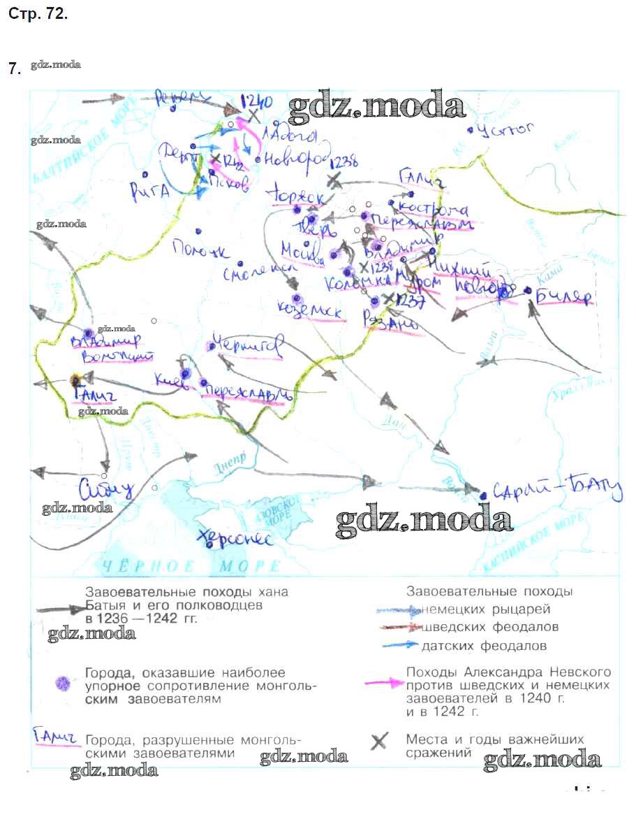 ГДЗ решение к заданию № стр. 72 История России 6 класс рабочая тетрадь Артасов И.А. Просвещение 2016 ФГОС бесплатно на гдз.мода!