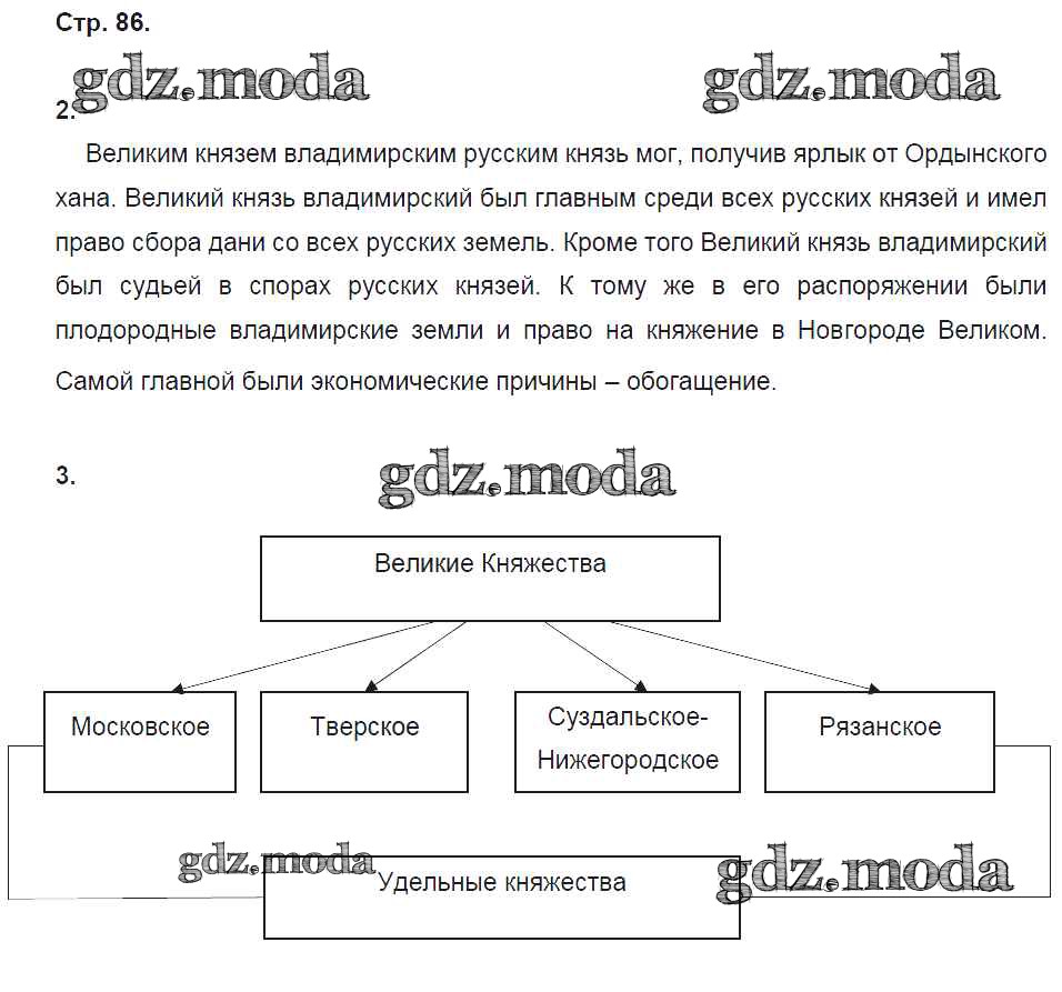 ГДЗ решение к заданию № стр. 86 История России 6 класс рабочая тетрадь Артасов И.А. Просвещение 2016 ФГОС бесплатно на гдз.мода!