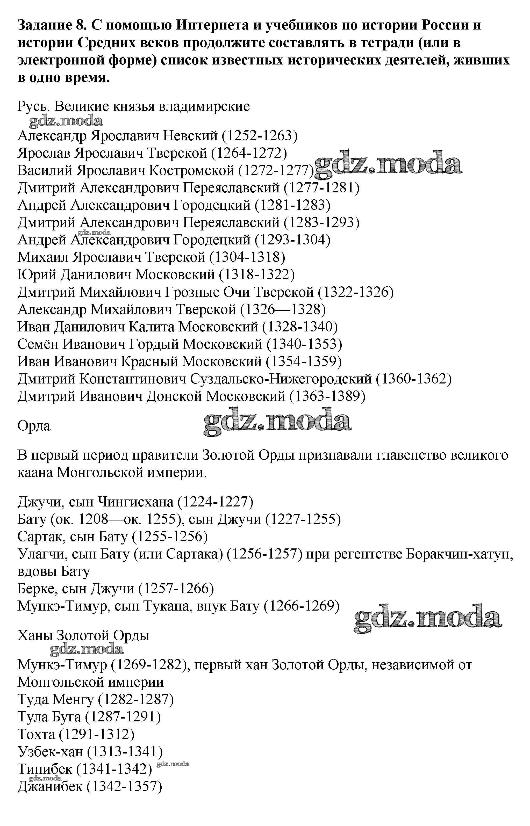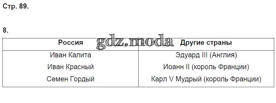 ГДЗ решение к заданию № стр. 89 История России 6 класс рабочая тетрадь Артасов И.А. Просвещение 2016 ФГОС бесплатно на гдз.мода!