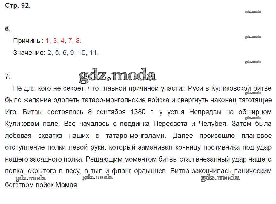 ГДЗ решение к заданию № стр. 92 История России 6 класс рабочая тетрадь Артасов И.А. Просвещение 2016 ФГОС бесплатно на гдз.мода!