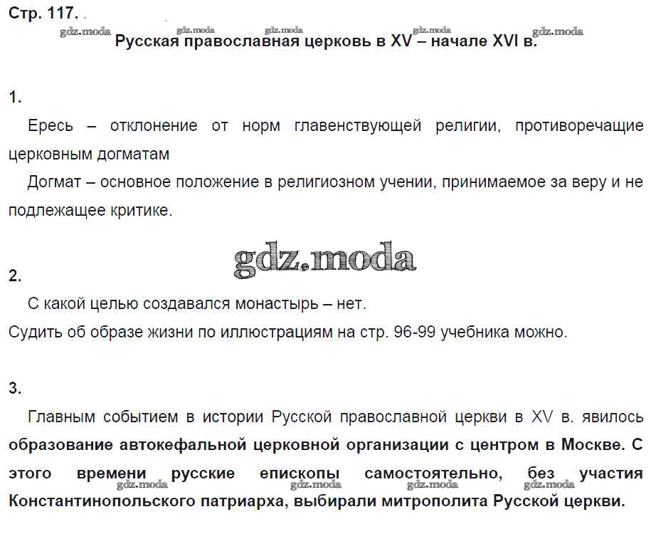 ГДЗ решение к заданию № стр. 117 История России 6 класс рабочая тетрадь Артасов И.А. Просвещение 2016 ФГОС бесплатно на гдз.мода!