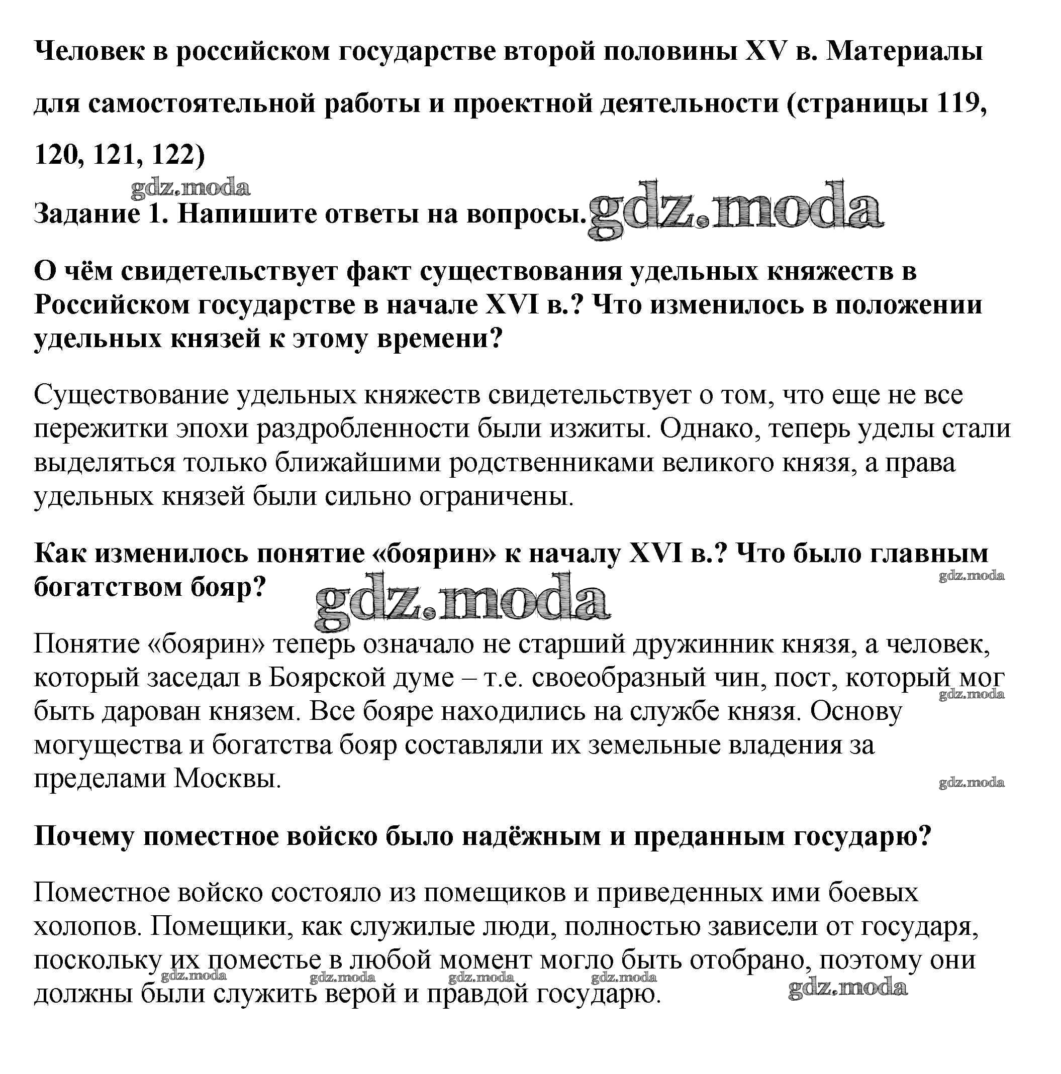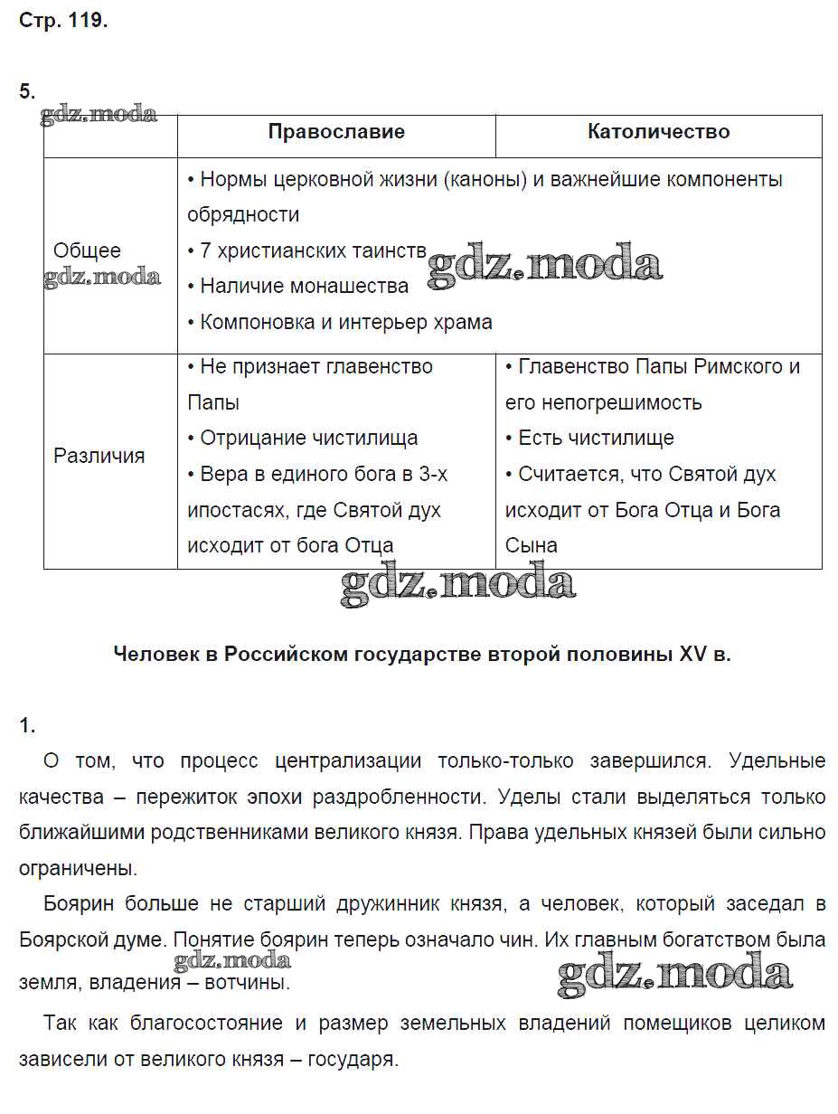 ГДЗ решение к заданию № стр. 119 История России 6 класс рабочая тетрадь Артасов И.А. Просвещение 2016 ФГОС бесплатно на гдз.мода!