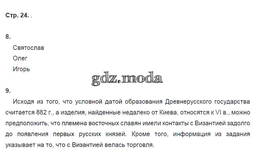 ГДЗ решение к заданию № стр. 24 История России 6 класс рабочая тетрадь Артасов И.А. Просвещение 2016 ФГОС бесплатно на гдз.мода!
