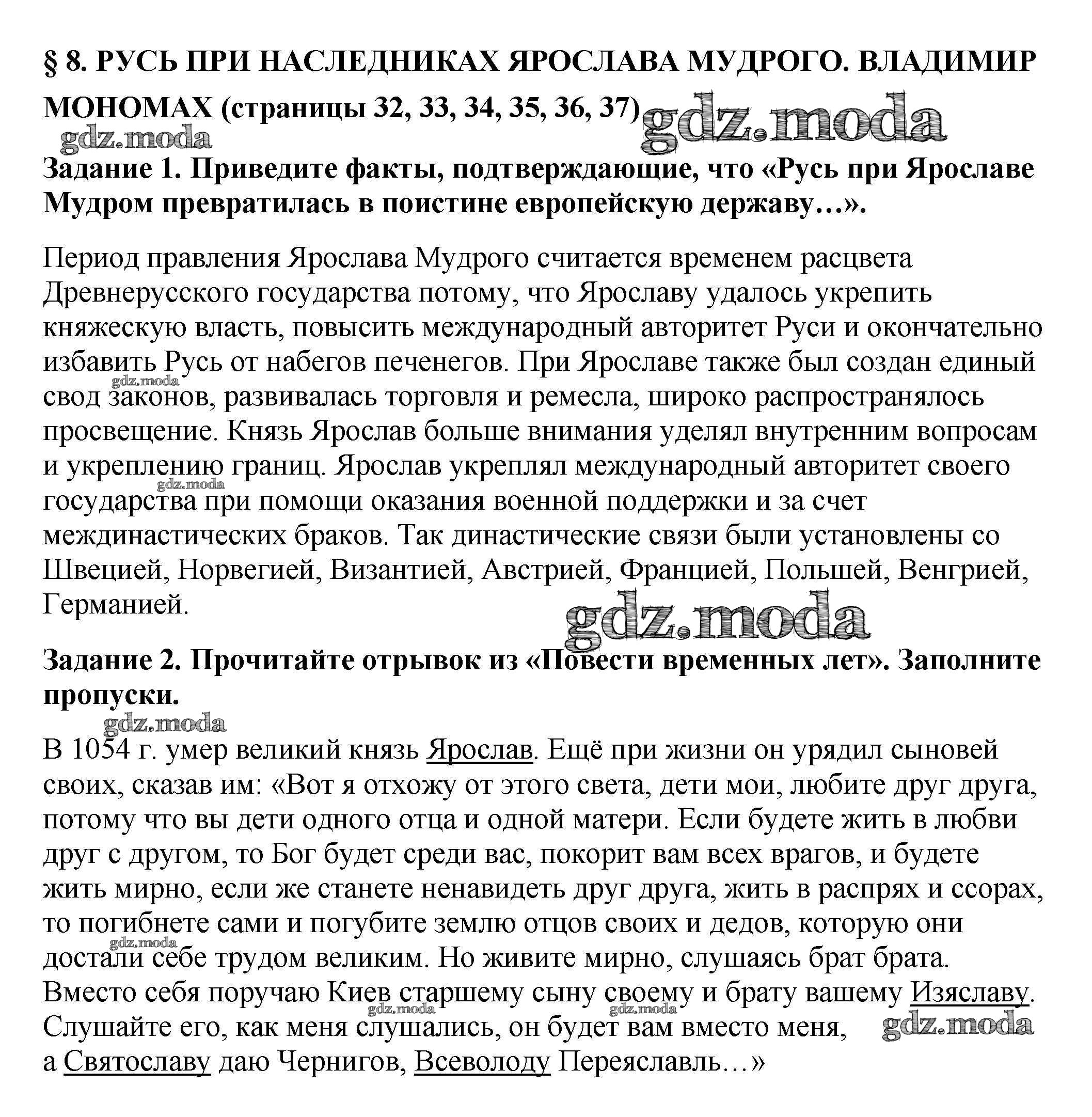 ГДЗ решение к заданию № стр. 32 История России 6 класс рабочая тетрадь Артасов И.А. Просвещение 2016 ФГОС бесплатно на гдз.мода!