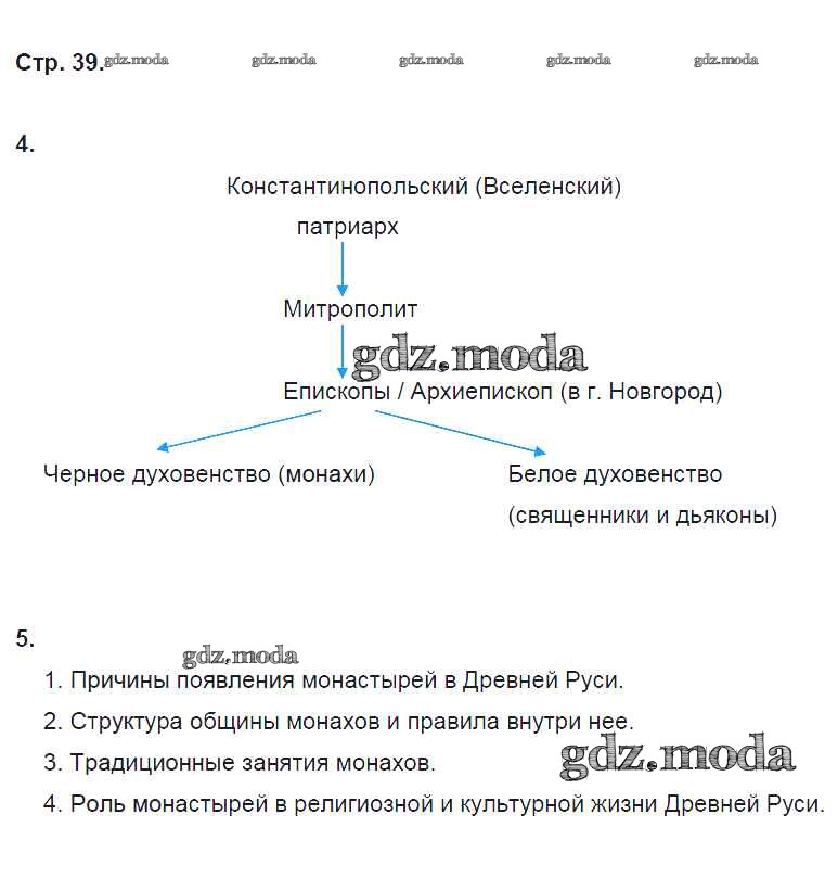 ГДЗ решение к заданию № стр. 39 История России 6 класс рабочая тетрадь Артасов И.А. Просвещение 2016 ФГОС бесплатно на гдз.мода!