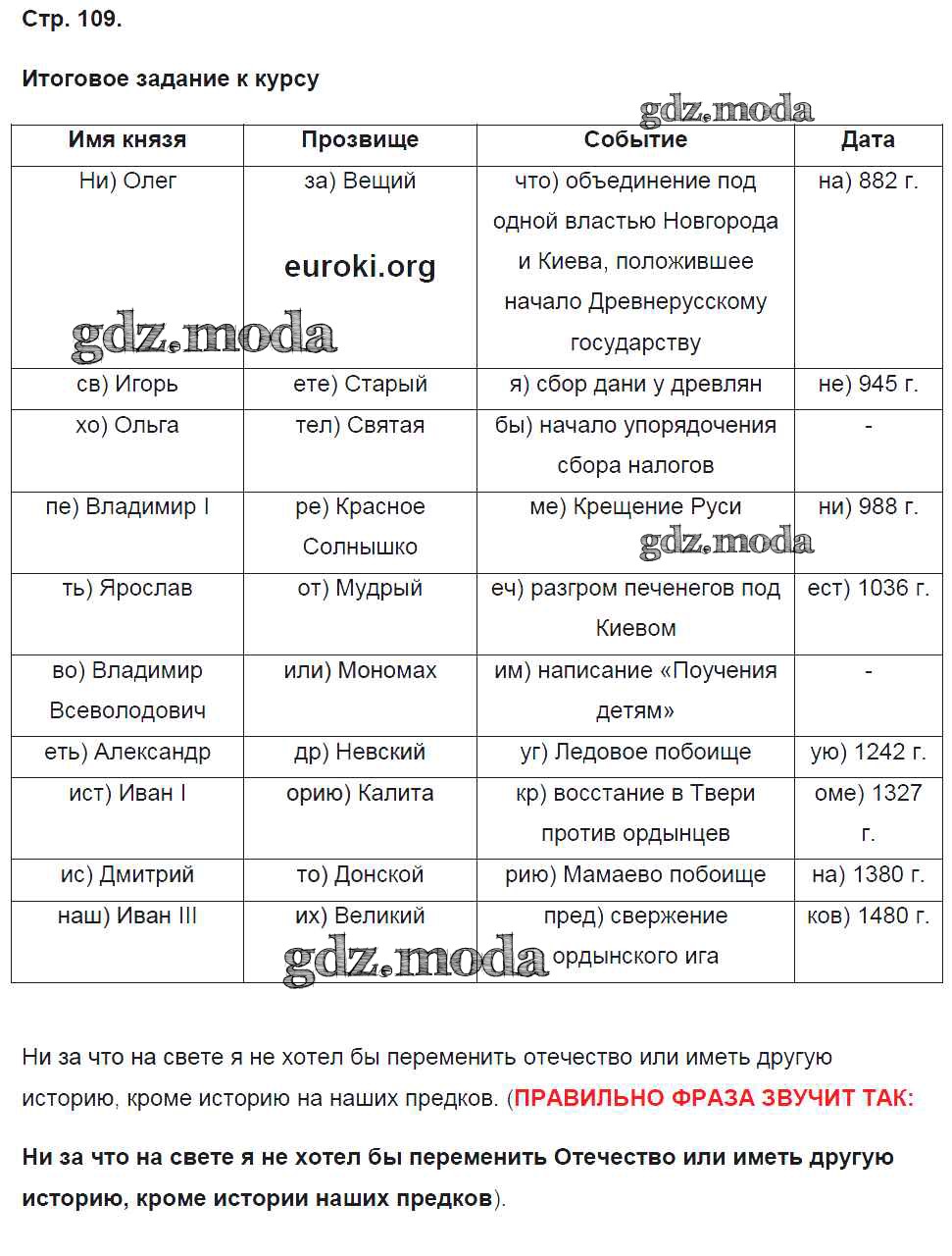 ГДЗ решение к заданию № 109 История России 6 класс рабочая тетрадь Баранов П.А. Вентана-граф 2017 ФГОС бесплатно на гдз.мода!