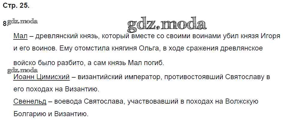 ГДЗ решение к заданию № 25 История России 6 класс рабочая тетрадь Баранов П.А. Вентана-граф 2017 ФГОС бесплатно на гдз.мода!
