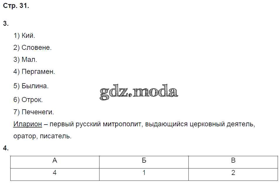 ГДЗ решение к заданию № 31 История России 6 класс рабочая тетрадь Баранов П.А. Вентана-граф 2017 ФГОС бесплатно на гдз.мода!