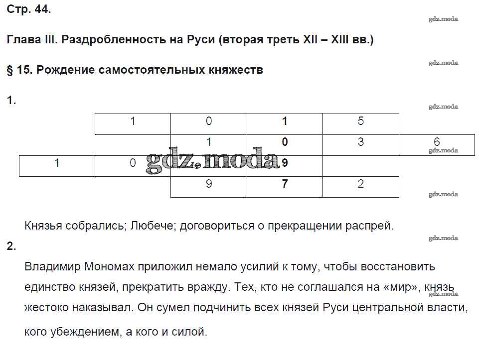 ГДЗ решение к заданию № 44 История России 6 класс рабочая тетрадь Баранов П.А. Вентана-граф 2017 ФГОС бесплатно на гдз.мода!