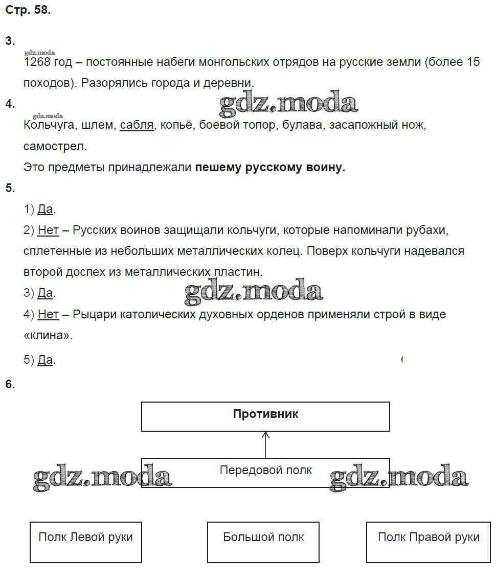ГДЗ решение к заданию № 58 История России 6 класс рабочая тетрадь Баранов П.А. Вентана-граф 2017 ФГОС бесплатно на гдз.мода!