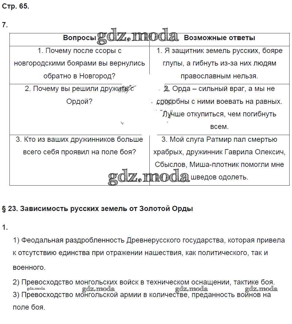 ГДЗ решение к заданию № 65 История России 6 класс рабочая тетрадь Баранов П.А. Вентана-граф 2017 ФГОС бесплатно на гдз.мода!