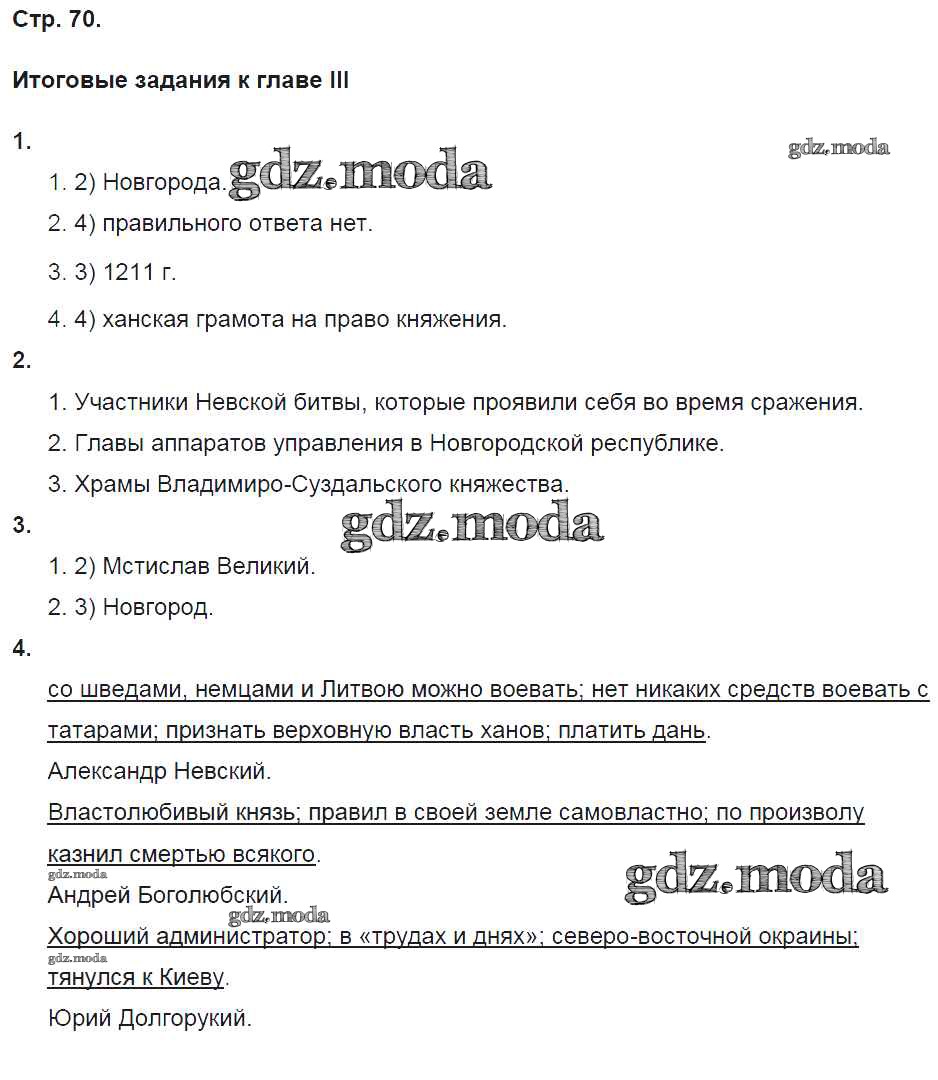 ГДЗ решение к заданию № 70 История России 6 класс рабочая тетрадь Баранов П.А. Вентана-граф 2017 ФГОС бесплатно на гдз.мода!