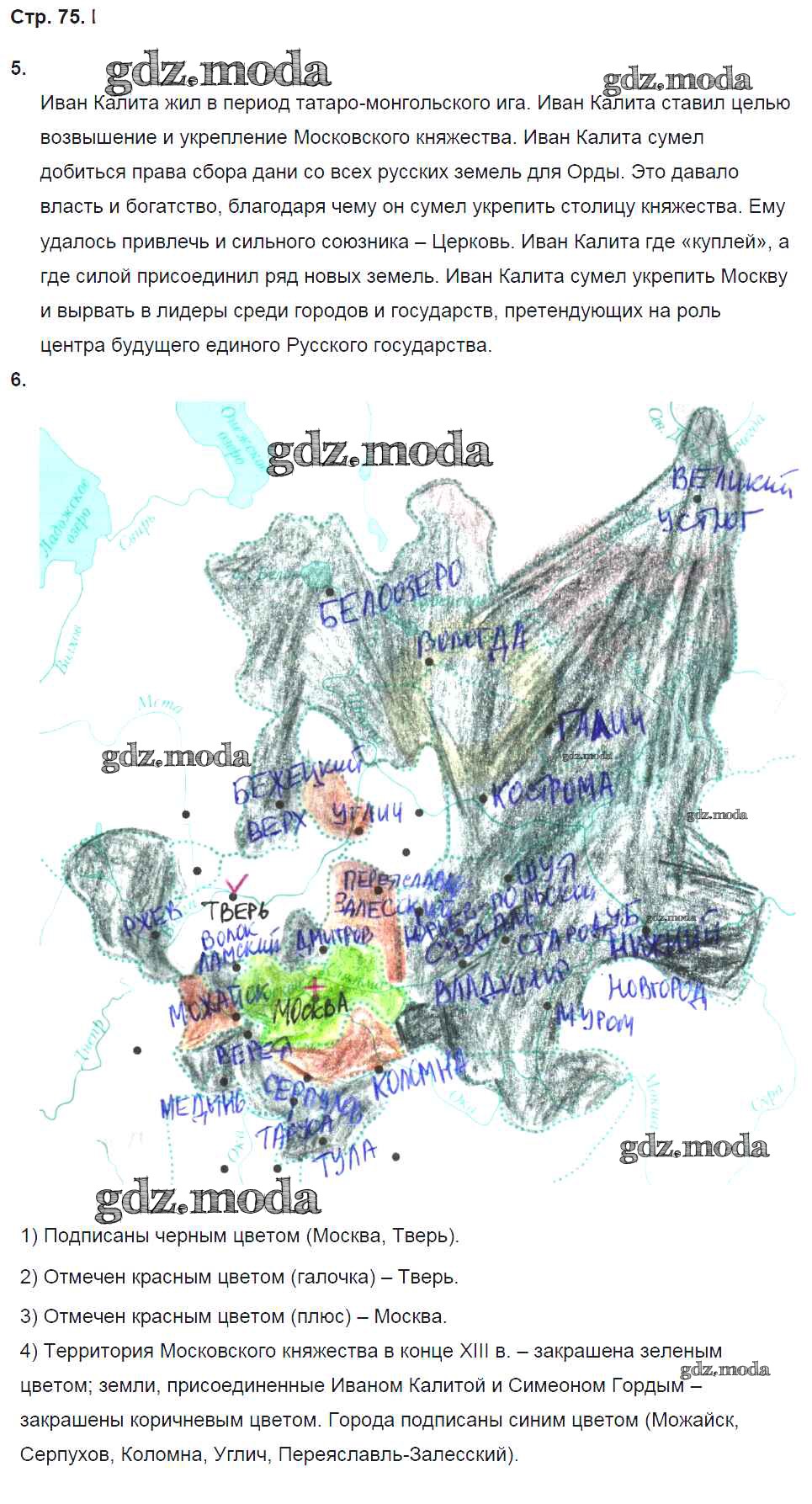 ГДЗ решение к заданию № 75 История России 6 класс рабочая тетрадь Баранов П.А. Вентана-граф 2017 ФГОС бесплатно на гдз.мода!