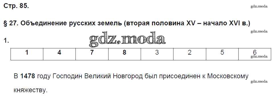 ГДЗ решение к заданию № 85 История России 6 класс рабочая тетрадь Баранов П.А. Вентана-граф 2017 ФГОС бесплатно на гдз.мода!
